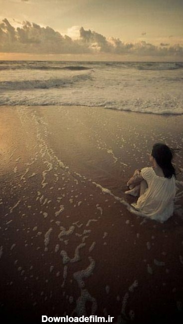 عکس دختر غمگین لب ساحل