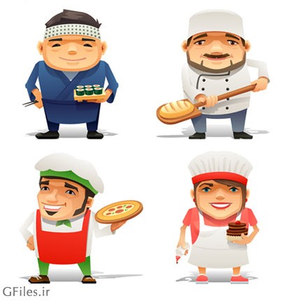 دانلود فایل لایه باز کاراکتر و شخصیت کارتونی آشپز و شیرینی پز و نانوا و کافه من با دو فرمت ai و eps