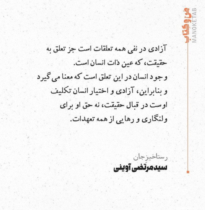 آزادی در نفی همه تعلقات است جز تعلق به حقیقت، که عین ذات انسان است. وجود انسان در این تعلق است که معنا می گیرد و بنابراین