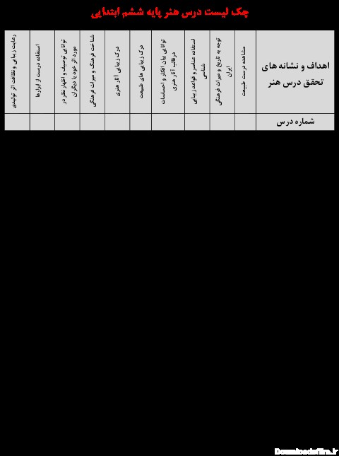 دانلود نمونه سوال - آزمونک رایگان هنر ششم دبستان