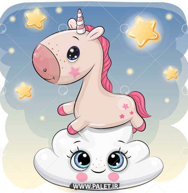 دانلود وکتور کارتونی اسب تک شاخ روی ابر طرح گرافیکی وکتور کارتون که با طرح های گرافیکی و فانتزی کودکانه و عاشقانه طراحی شده است و از کیفیت بسیار عالی
