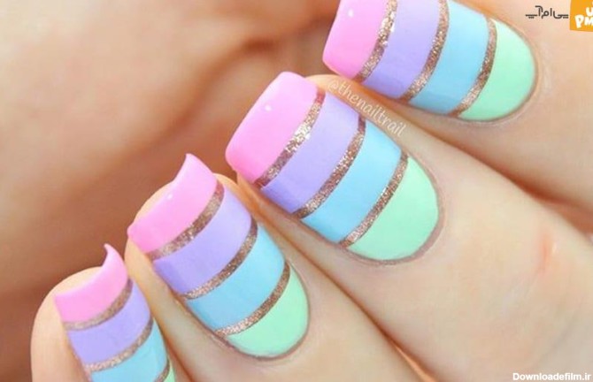 دیزاین ناخن با لاک پاستیلی ، آموزش کاشت ناخن طرح تابستانی