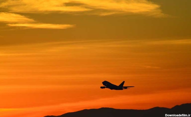 دانلود عکس با کیفیت از فرود هواپیما در طلوع با فرمت jpg