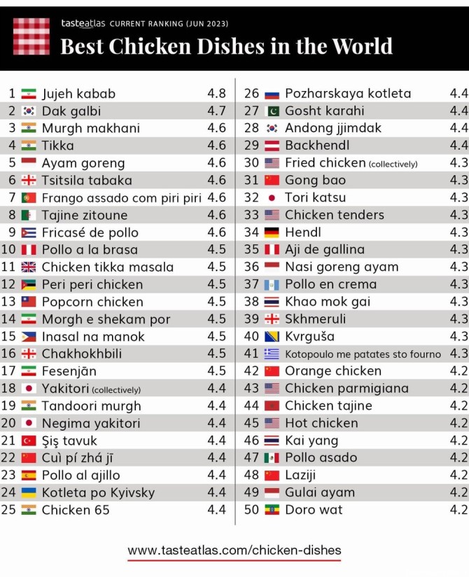 یک غذای خوشمزه ایرانی در فهرست «۱۰۰ غذای مرغ با رتبه برتر در جهان» اول شد.