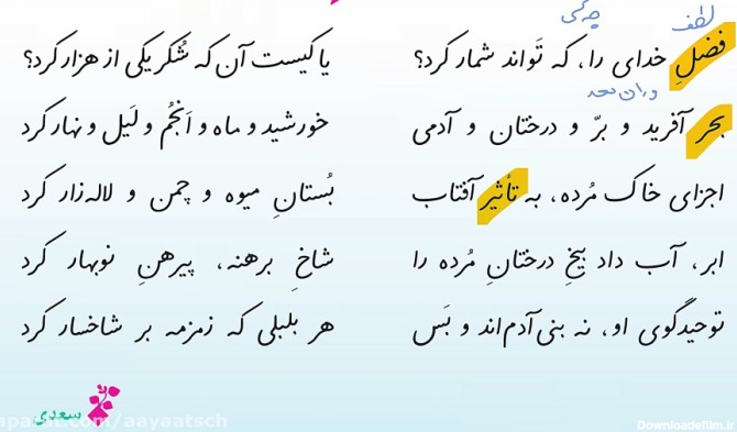 معنی شعر فضل خدا فارسی پنجم (درس 2 )