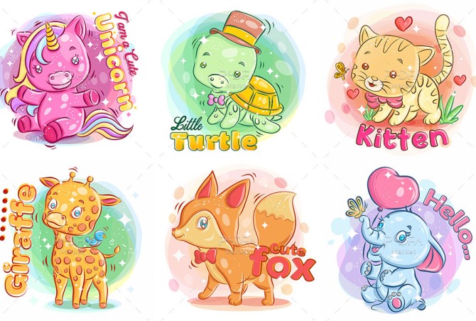 دانلود 7 طرح وکتور حیوانات کودکانه و کارتونی فانتزی و بامزه طرح وکتور حیوانات کودکانه و کارتونی فانتزی و بامزه یک مجموعه زیبا از 7 طرح لایه باز روباه، فیل،