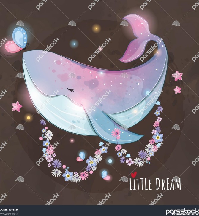 نهنگ حیوانی ناز با تصویر پروانه و گل تصویر پس زمینه - بزرگترین مرجع خرید و فروش عکس و طرح لایه باز با کیفیت بالا در ایران در پارس استاک.