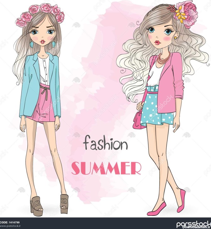 دست کشیده زیبا زیبا کارتون دختران تابستانی تصویر برداری - بزرگترین مرجع خرید و فروش عکس و طرح لایه باز با کیفیت بالا در ایران در پارس استاک.