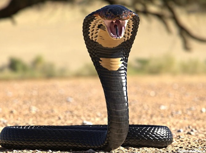 «شاهکبرا» یکی از سمیترین مارهای روی کره زمین است که در هنگام حمله میتواند تا یک سوم بدن خود را از زمین بلند کند و برای حمله آماده شود.