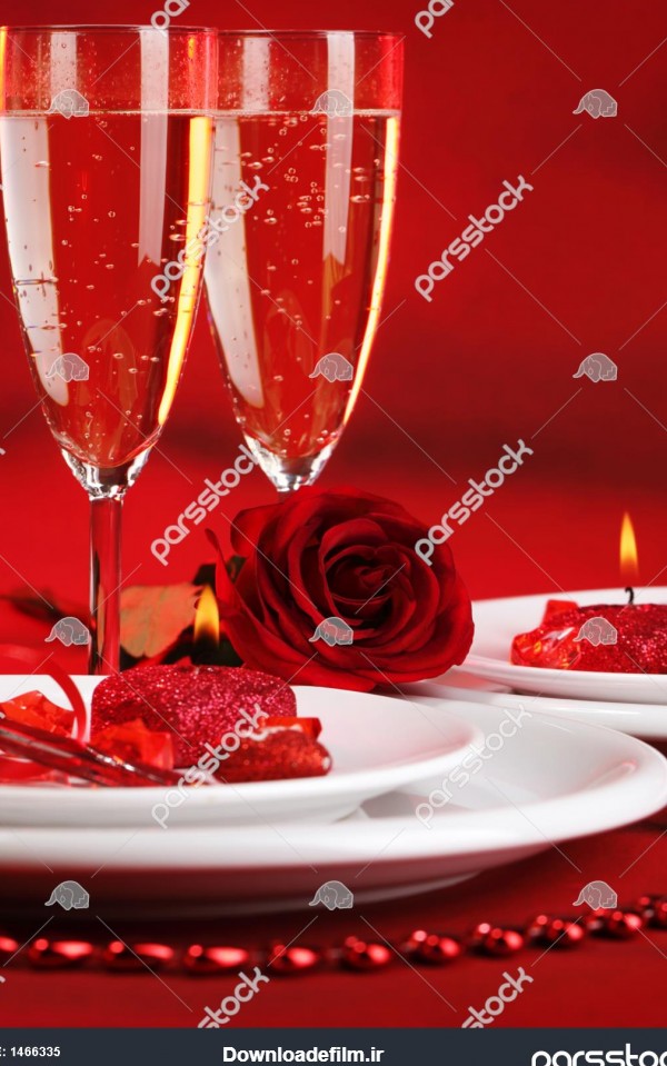 عکس تنظیم جدول زیبا رمانتیک قرمز ظروف مخصوص جشن عروسی با تزئینات عاشقانه دو لیوان نوشیدنی گل رز روز عاشقانه و مفهوم عشق - بزرگترین مرجع خرید و فروش عکس و طرح لایه باز با کیفیت بالا در ایران در پارس استاک.