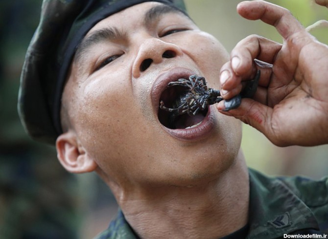 حوادث رکنا : سربازان آمریکایی در یک چالش منزجرکننده و وحشیانه به خوردن خون کبرا، عقرب و رتیل پرداختند.