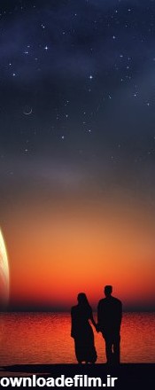 یک تصویر کارتونی از زوج عاشق در شب، زیر نور ماه و ستارگان! ابعاد این تصویر عاشقانه مناسب موبایل هست. برای دانلود این والپیپر رمانتیک عاشقانه، روی عکس بزنید تا با کیفیت بالا دانلود شود.