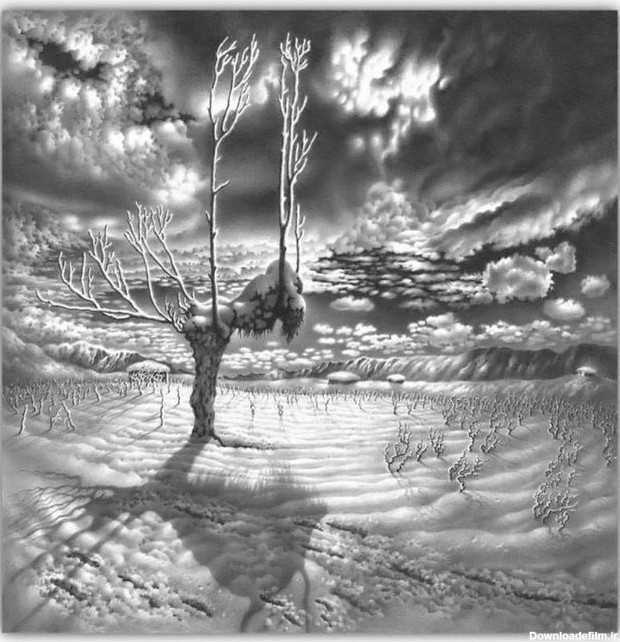 طراحی مناظر زیبای برفی با مداد (عکس)