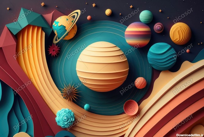 عکس پس زمینه سیاره ستاره خورشید ماه زمین سبک تصویرسازی کاغذی - پس ...