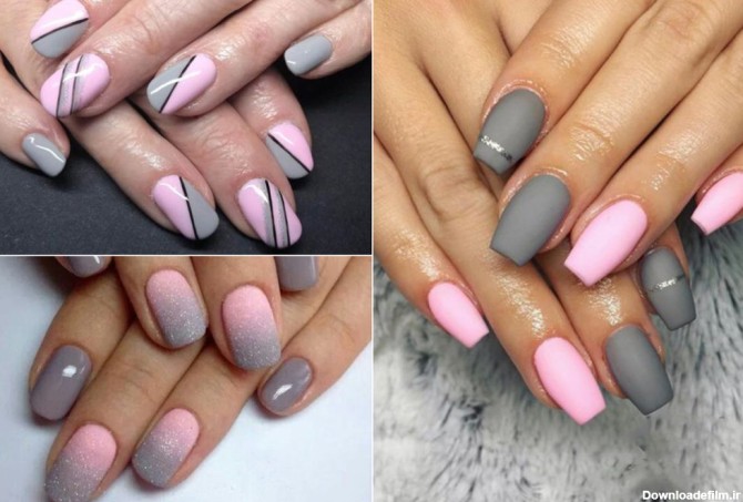 عکس ناخن طوسی صورتی