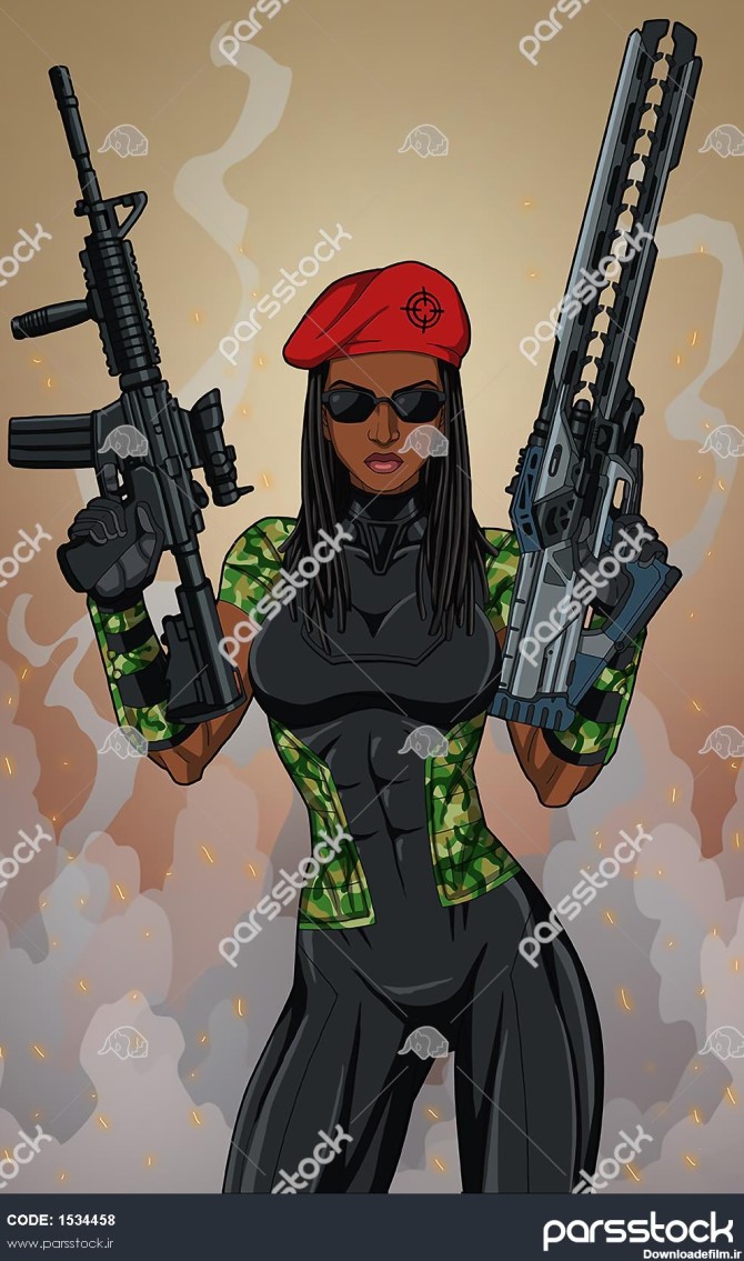 دختر جنگجو عینک اسلحه نقاشی دیجیتال - بزرگترین مرجع خرید و فروش عکس و طرح لایه باز با کیفیت بالا در ایران در پارس استاک.