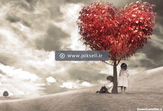 دانلود عکس با کیفیت از خواهر و برادر زیر درخت قلبی شکل با پسوند jpg