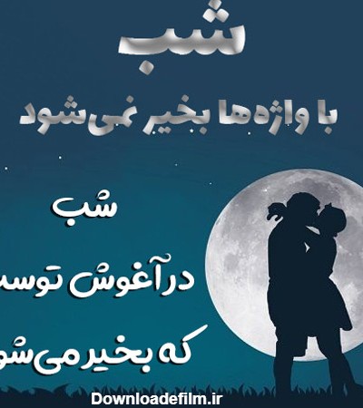 عکس نوشته و جملات عاشقانه شب بخیر عشقم و نازوب شب، پرده ای است سیاه و لباس و پوششى بر اندام زمین سیاهی آرام بخش شب، سکوت پر رمز و راز ش شب بخیر...