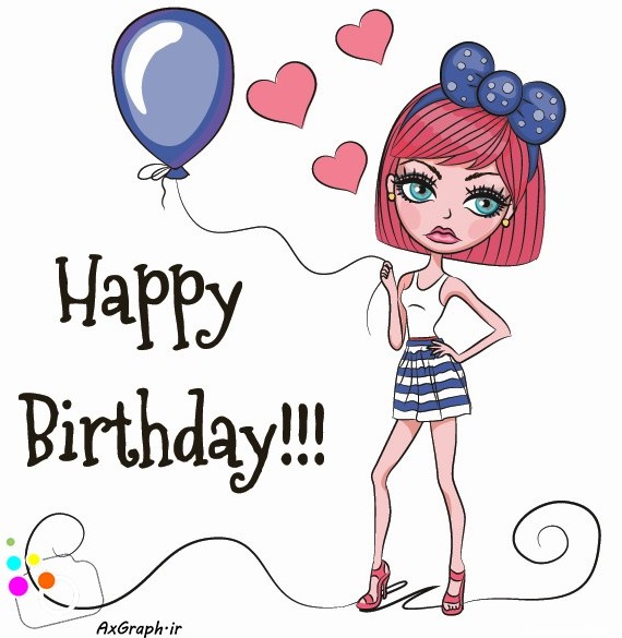 وکتور کارتونی کارت تولدت مبارک با عکس دختر و بادکنک -کد 3298