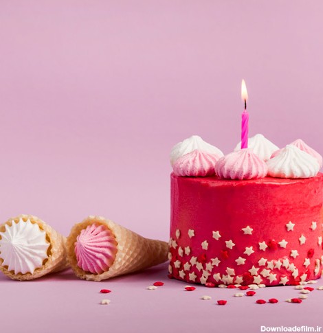 عکس با کیفیت و هنری از کیک تولد به رنگ صورتی که بسیار زیبا دیزاین شده است مناسب برای تبریک تولد و یا طراحی کارت تبریک تولد