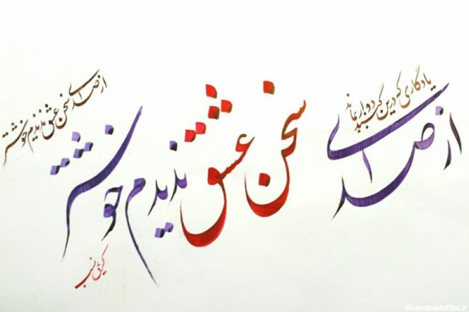 هنر خوشنویسی از صدای سخن عشق ندیدم خوشتر - خطاطی مصرع ذکر شده