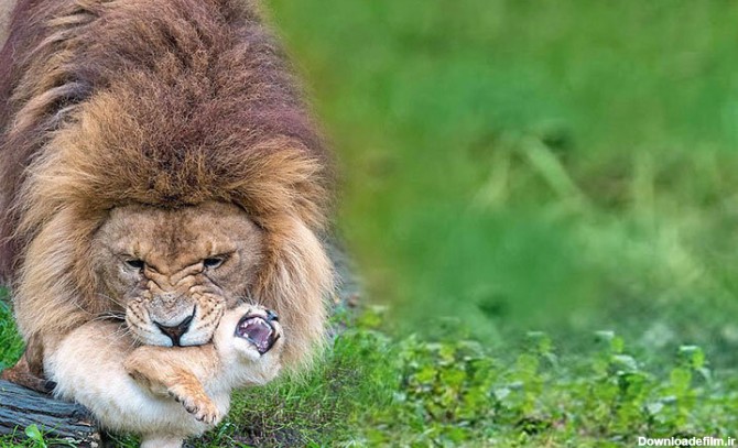 تصویر بلعیده شدن سر یک توله شیر توسط مادرش سوژه عکاس حیات وحش شد.