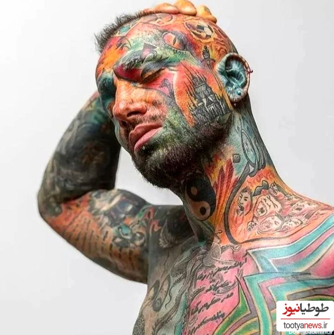 تصویری از مادر تتلو منتشر شد که خودش را شبیه پسرش درست کرده و صورتش را تتو کرده است.