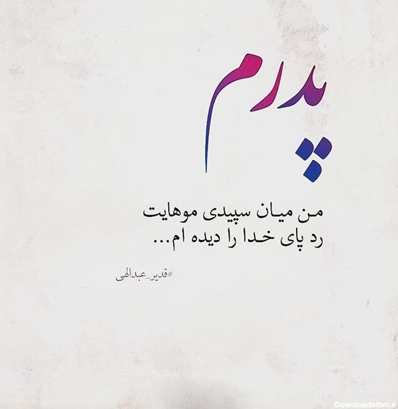 عکس پروفایل پدر عکس نوشته پدرانه احتیاجی به تسبیح نیست … دستانت را که به من بدهی … با انگشتانت ذکر دوست داشتن میگویم … پدرم ، دستانت ، چشمانت وصدایت را عاشقانه دوست دارم … متن متنوع درباره پدر وقتی دیروز باران بارید، «آن مرد در باران آمد» را به یاد آوردم و «آن مرد با نان آمد». یادم آمد که دیگر پدرم