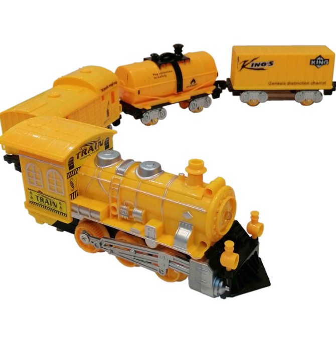 Battery powered toy train set with track in packaging box is safe for kids and develops important skills