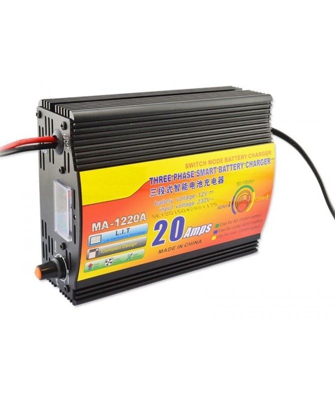 خرید اینترنتی شارژر باطری ماشین 12V 20A برند سوئر اورجینال، انواع باطری 12 ولت تا 120 آمپر، سوئیچینگ، لایههای محافظتی، خاموشی خودکار، ولوم تنظیم آمپر، نمایشگر