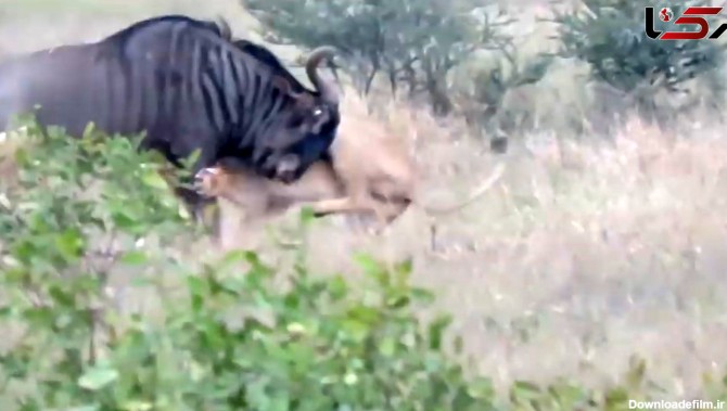 عکس شکار گاو وحشی توسط شیر