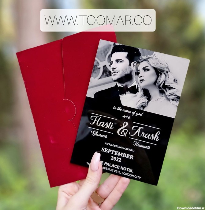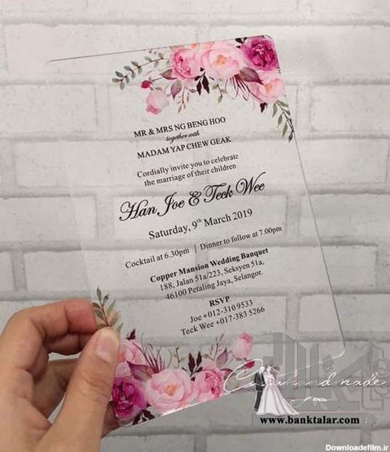 این کارت عروسی از جنس طلق ( پلکسی ) است و بالاترین و لاکچری ترین کیفیت طلق را دارد. طلق این کارت، خارجی مات می باشد. طرح و رنگ گل ها و چاپ متن قابل تعویض است. سایز طلق 13×13 سانتی متر است. پاکت این کارت عروسی نیز مقوای سرمه ای فابریک می باشد.