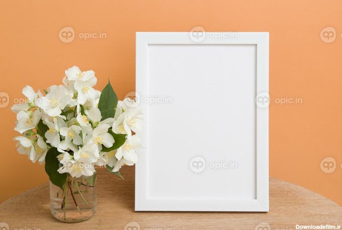دانلود ماکت عکس قاب سفید خالی روی میز گرد با یاس | اوپیک