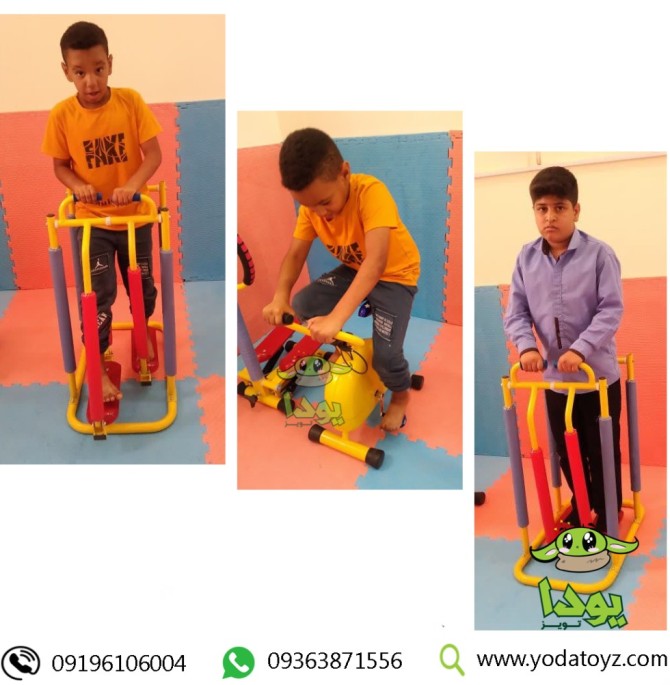 ست 5 تکه لوازم ورزشی کودک مناسب خانه بازی و مهدکودک بوده و شامل 5 وسیله ورزشی از جمله تردمیل و گام زن و مسگری و دوچرخه ثابت و مسگری میباشد.