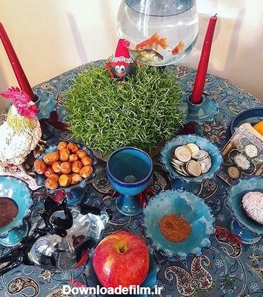 تزیین سفره هفت سین سنتی 99 در ادامه مجموعه ای از تزیین سفره هفت سین با ظروف مسی ، تزیین سفره هفت سین