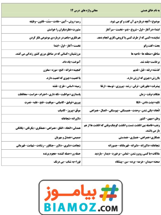 درس چهاردهم: ایران آباد کتاب فارسی سوم پایه سوم دبستان درس چهاردهم: ایران آباد فارسی سوم بیاموز در این بخش درسنامه، جزوه، طرح درس، کاربرگ های امتحانی، نمونه سوال، آزمونک و ارزشیابی مستمر همراه با پاسخ تشریحی، نمونه سوال با جواب، پرسش و پاسخ، پاورپوینت و ویدئوی آموزشی مربوط به درس چهاردهم: ایران آباد کتاب فارسی سوم پایه سوم ابتدایی ارائه می دهد.
