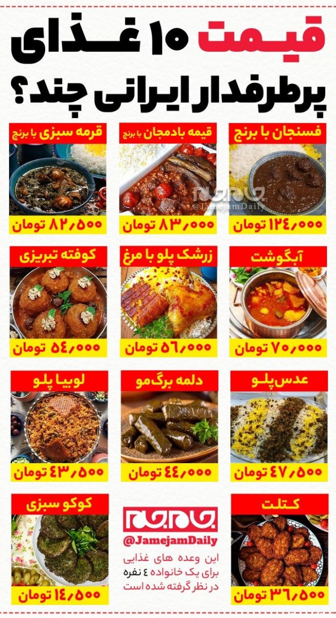قیمت ۱۰ غذای پرطرفدار ایرانی برای خانواده چهارنفره چند؟