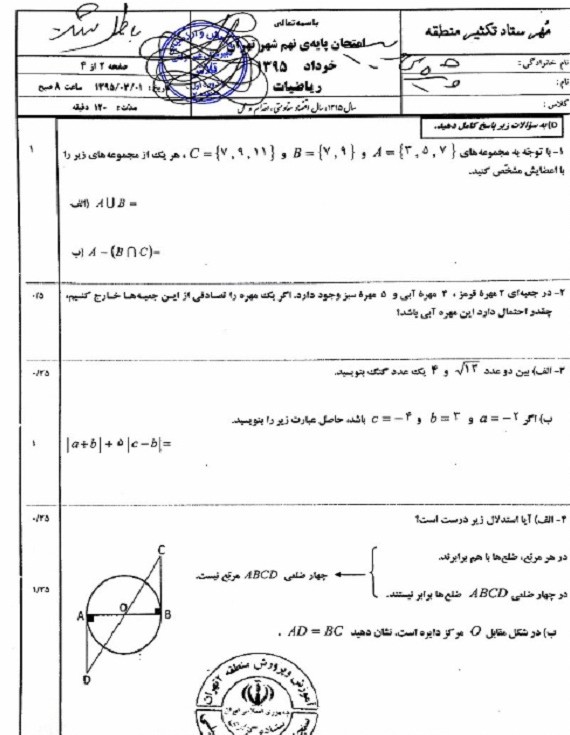 دانلود نمونه سوال - راهنمای گام به گام ریاضی نهم دوره اول متوسطه