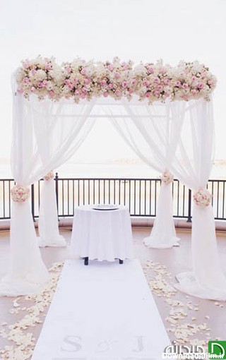 طراحی آلاچیق برای نشستن عروس و داماد در باغ,دیزاین جایگاه عروس داماد,گل آرایی تزیین آلاچیق باغ عروسی,دکور آتلیه,جایگاه عروس لب دریا,محل نشستن عروس داماد باغ