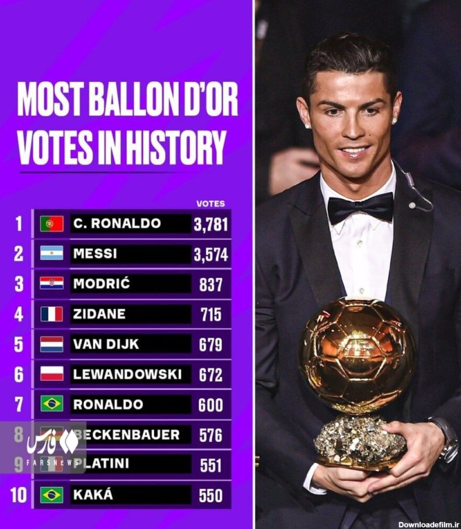 ابرستاره پرتغالی در تاریخ مراسم توپ طلای بهترین بازیکن دنیا از رقیب سنتیاش بالاتر قرار گرفت.