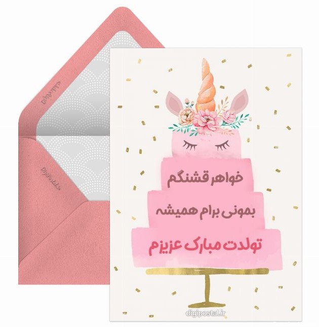 کارت پستال خواهر قشنگم تو زیباترین لبخند خدایی تولدت مبارک, HRAG - Happy Birthday, کارت پستال تبریک تولد به خواهرم آنلاین - کارت پستال دیجیتال