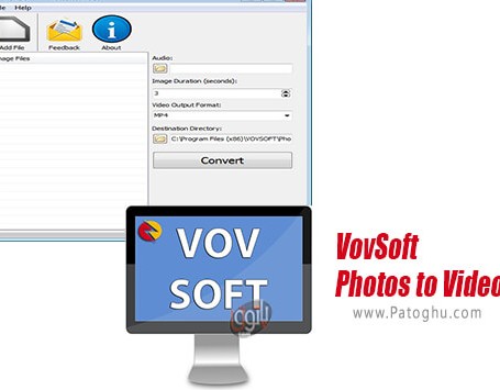 VovSoft Photos to Video ابزاری کاربردی برای تبدیل کردن تصاویر به فیلم می باشد. شما می توانید به فیلمی که می سازید، موزیک نیز اضافه نمایید. این اپلیکیشن تصاویری که به آن می دهید را به یک دیگر می چسباند و از آن ها فیلمی مناسب می سازد. تنها کاری که لازم است انجام دهید اضافه سازی تصاویر به برنامه و