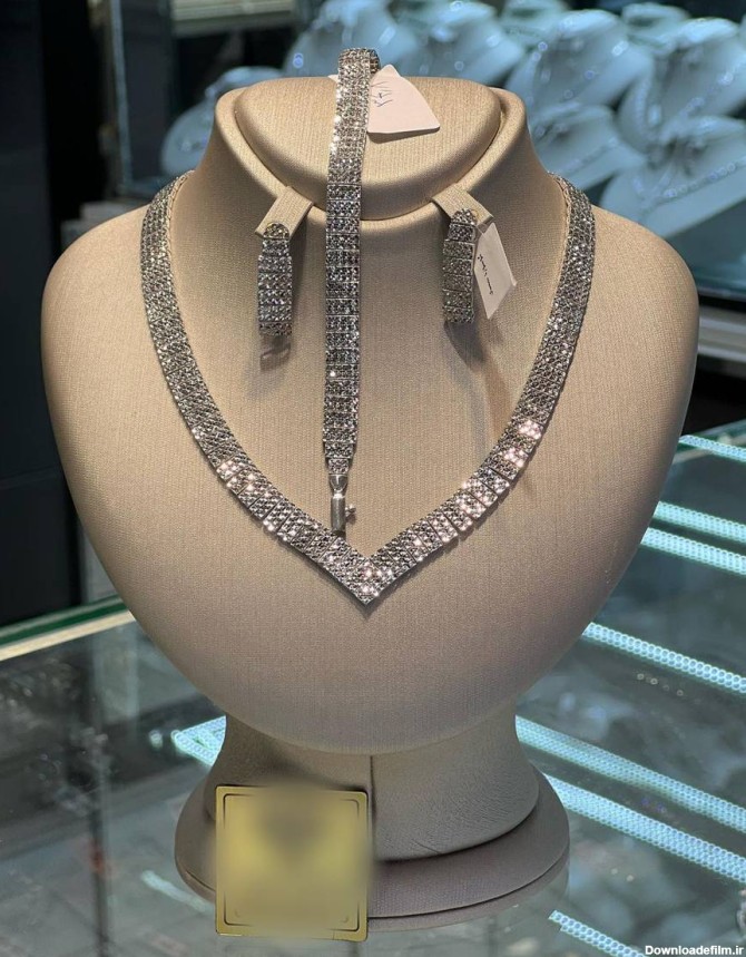 سرویس جواهر عروس مزین به برلیان سفید پاک و باگت سفید پاک, جواهری خاص و زیبا با درخشش و تلالویی زیبا و چشم نواز