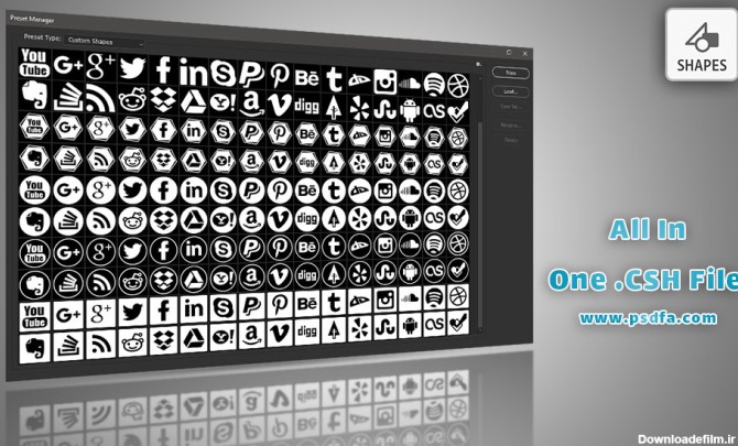 دانلود 160 شیپ آیکون های شبکه های اجتماعی برای فتوشاپ با فرمت CSH در این مطلب شاهد مجموعه 160 شیپ آیکون های شبکه های اجتماعی مناسب جهت نصب و استفاده در نرم