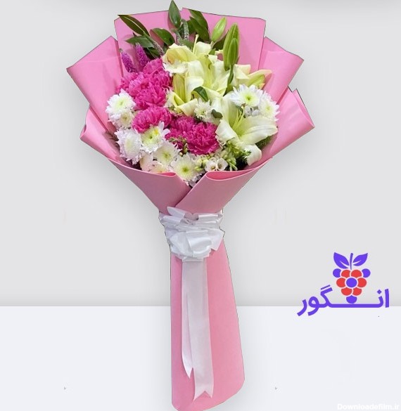 دسته گل ترکیبی زیبا همراه با گلهای لیلیوم، داوودی و... عاشقانه ای زیبا برای عزیزانتان. ارسال فوری و رایگان تهران و شهرستان ها.