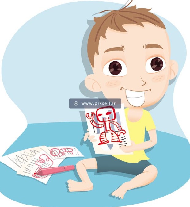 فایل لایه باز گرافیکی پسر بچه و نقاشی های رسم کرده . ارائه شده با پسوندهای eps و ai