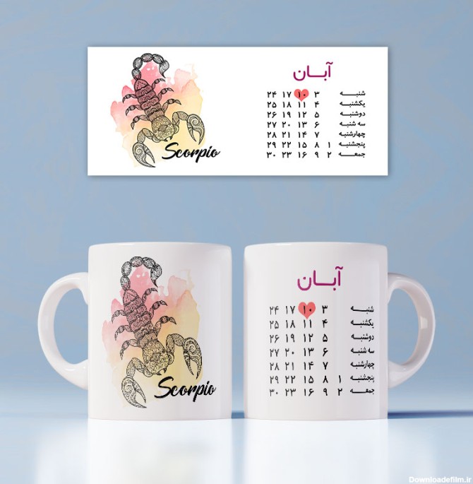 ماگ با نماد آبان ماه از جنس سرامیک بوده که بر روی آن طرج عقرب (Scorpio) چاپ شده است و در دو نوع ماگ سفید ساده و حرارتی مشکی عرضه میگردد.