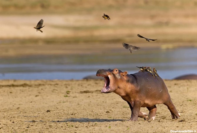 یک عکاس حیات وحش با واکنش بچه اسب آبی که به سمتش میدوید، غافلگیر شد. گویا دستهای از پرندگان با فرود آمدن به پشت این بچه حسابی او را ترسانده بودند.