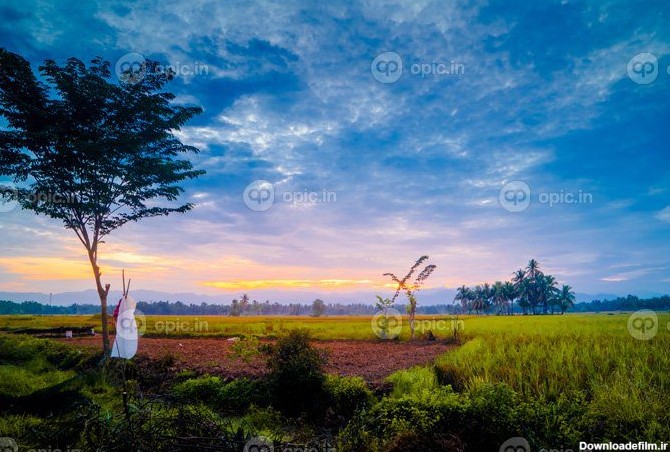 دانلود عکس منظره زیبای صبح روستایی با درخت و مزرعه اوپیک مرجع دانلود وکتور و عکس و طرح کاغذ دیواری و طرح تابلو