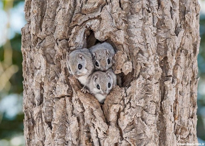 سه سنجاب پرنده کوتوله ژاپنی درون درخت/ هاندا ناتسومی